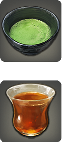 Usually drank only on special occasions, this tea is made by steeping pickled cherry blossoms in hot water. It is floral, salty, and subtly sweet with pink petals dancing within the cup, shimmering as if otherworldly. Simply breathing in the steam is enough to calm one’s nerves, and finishing the cup will leave one feeling at ease and ready for a good nights rest. (200 gil)